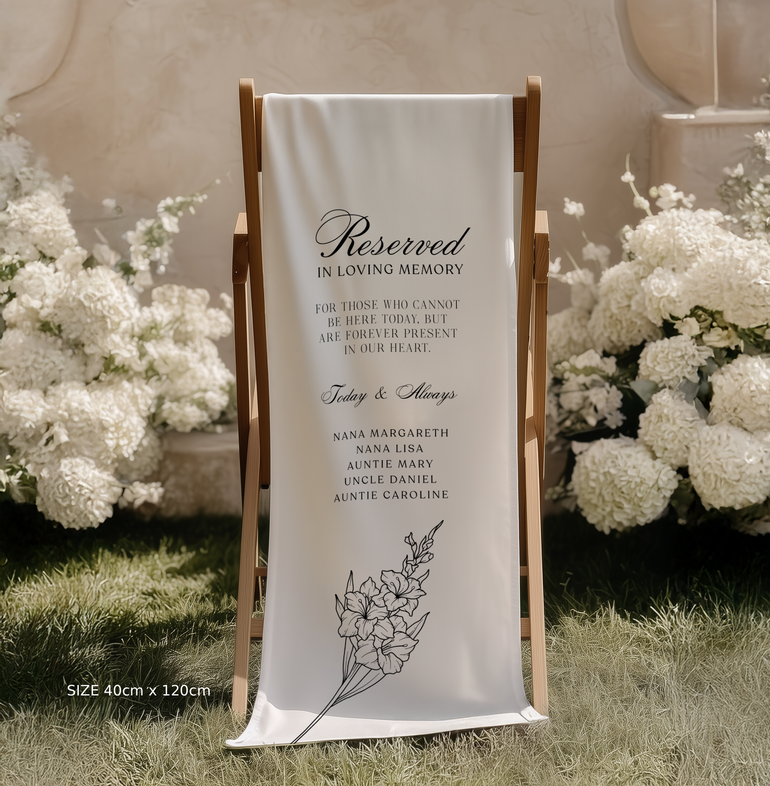 Crafted with care and designed to honour the most meaningful moments, our Linen Wedding Memorial Sign offers a beautiful and understated way to remember loved ones on your special day.